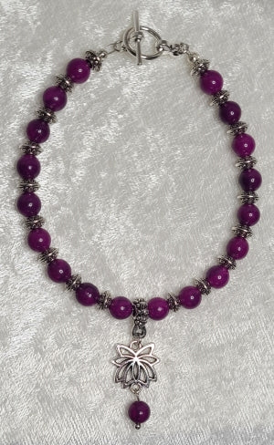 Bracelet - Purple Sugalite with Silver Lotus Flower Charm