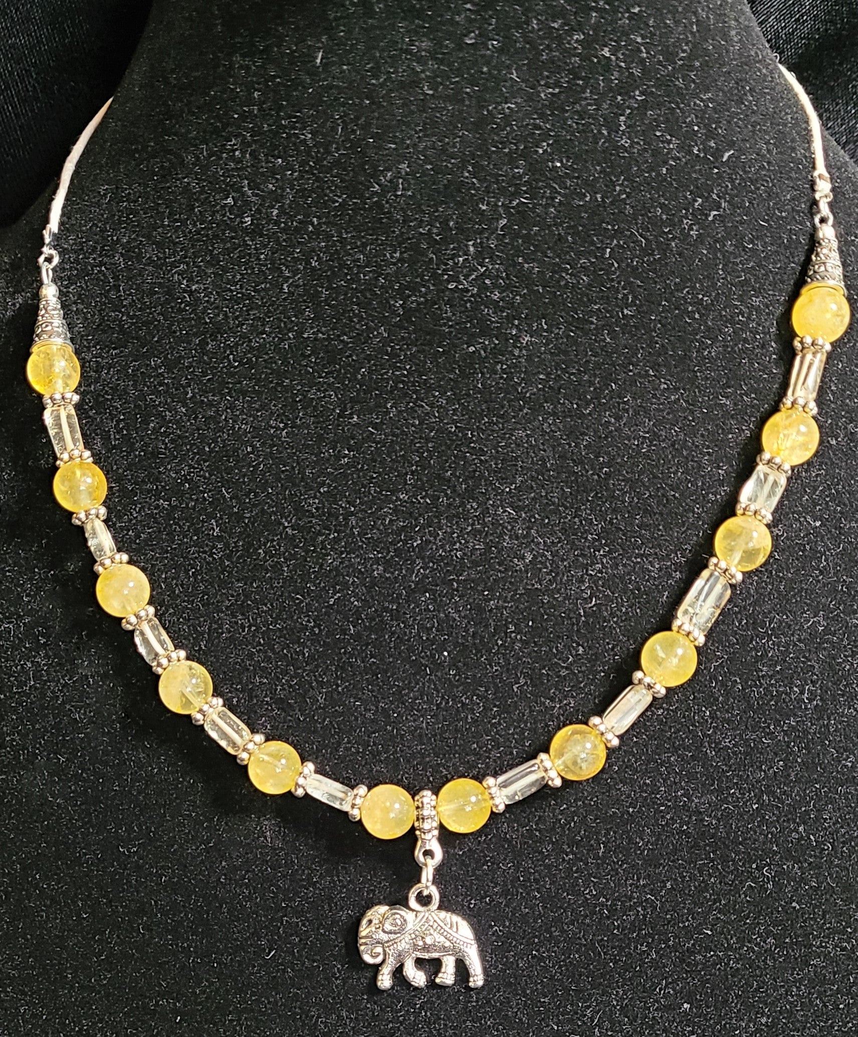 Necklace - Yellow Citrine with Silver Ganesha charm