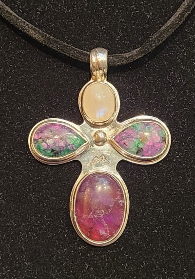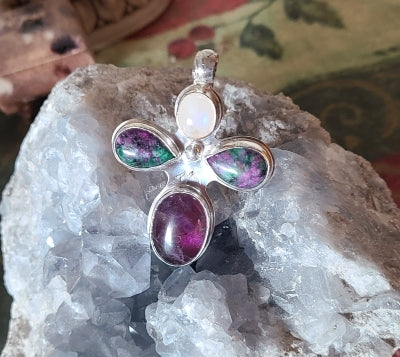 Pendant - Moonstone, Ruby Zoisite, and Amethyst