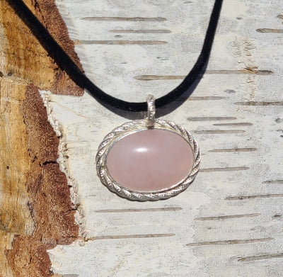 Pendant - Rose Quartz in brushed Sterling Silver